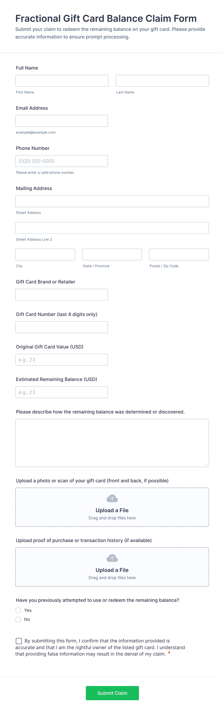 - Use Jotform’s conditional logic to show or hide fields based on user responses (e.g., only display additional fields if a certain claim type is selected).