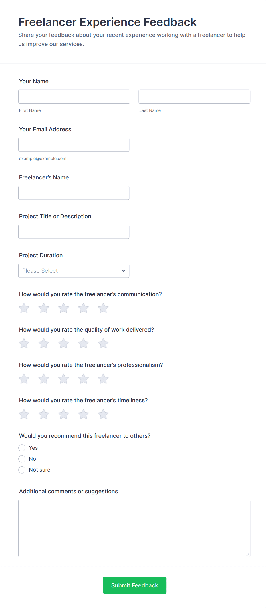 Business owners, HR professionals, event organizers, educators, and product managers can all benefit from using feedback forms to gather insights from their respective audiences.