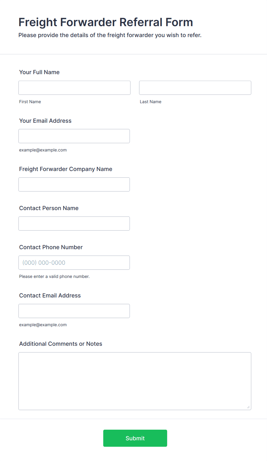 - For healthcare or sensitive referrals, include fields for privacy agreements or HIPAA compliance.