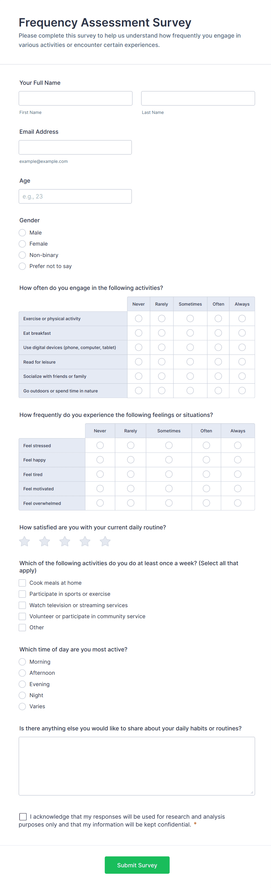 • Healthcare Surveys: Assess patient satisfaction, collect health histories, or screen for symptoms.