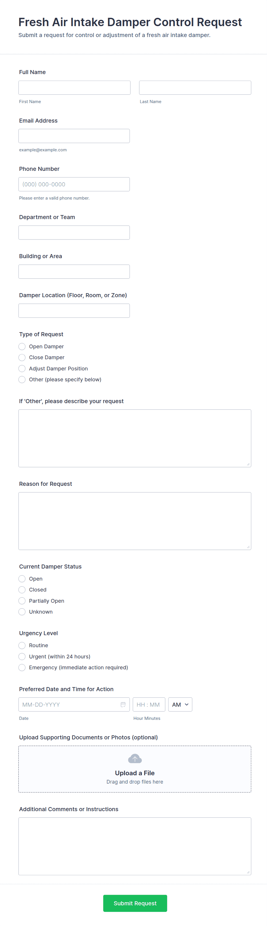 Plant Maintenance Request Form supports facility and maintenance teams with consistent data collection for repair requests, prioritization, and scheduling, helping operations track each form submission from report to resolution in Jotform.