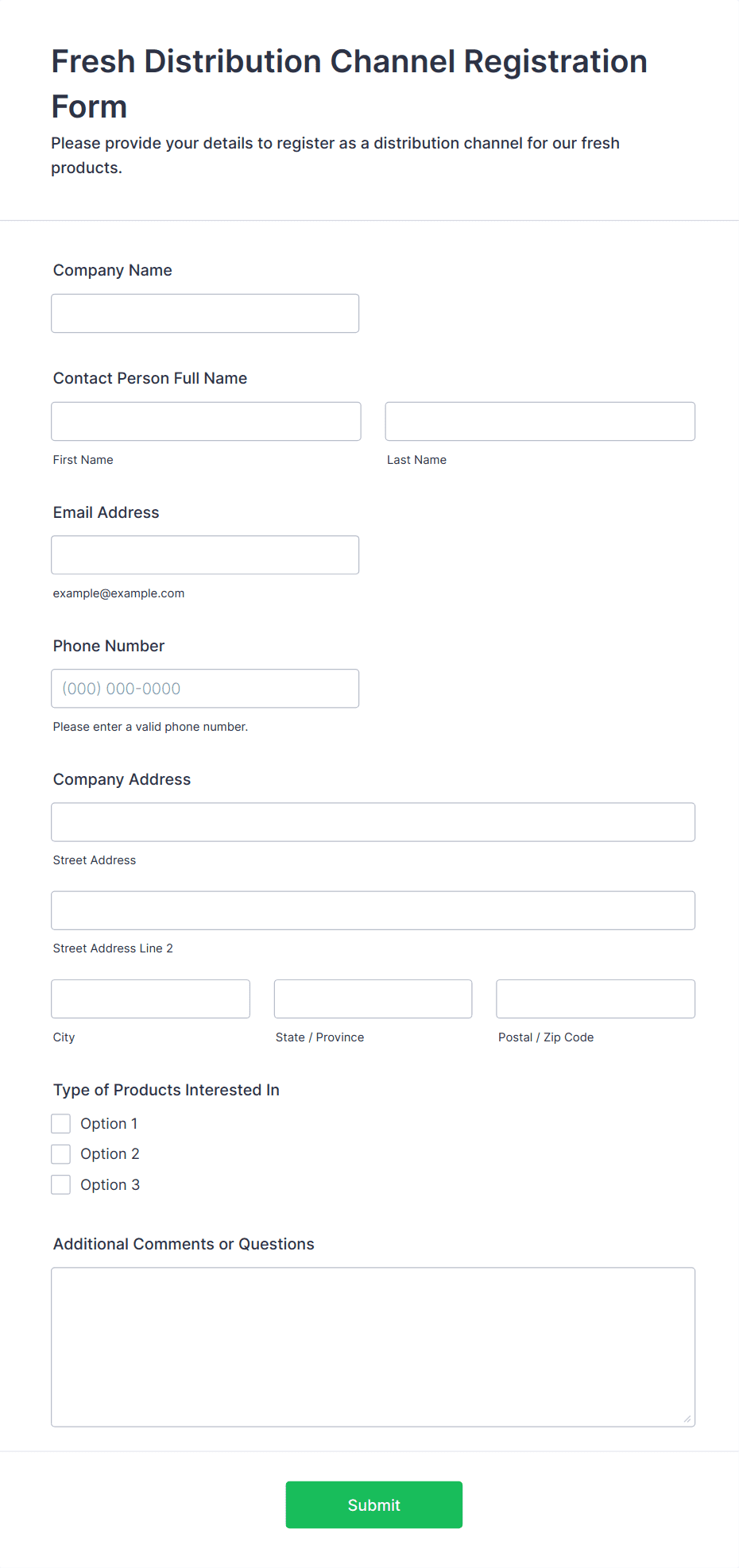 - Corporate Partnership Forms could request case studies, references, and compliance certifications.
