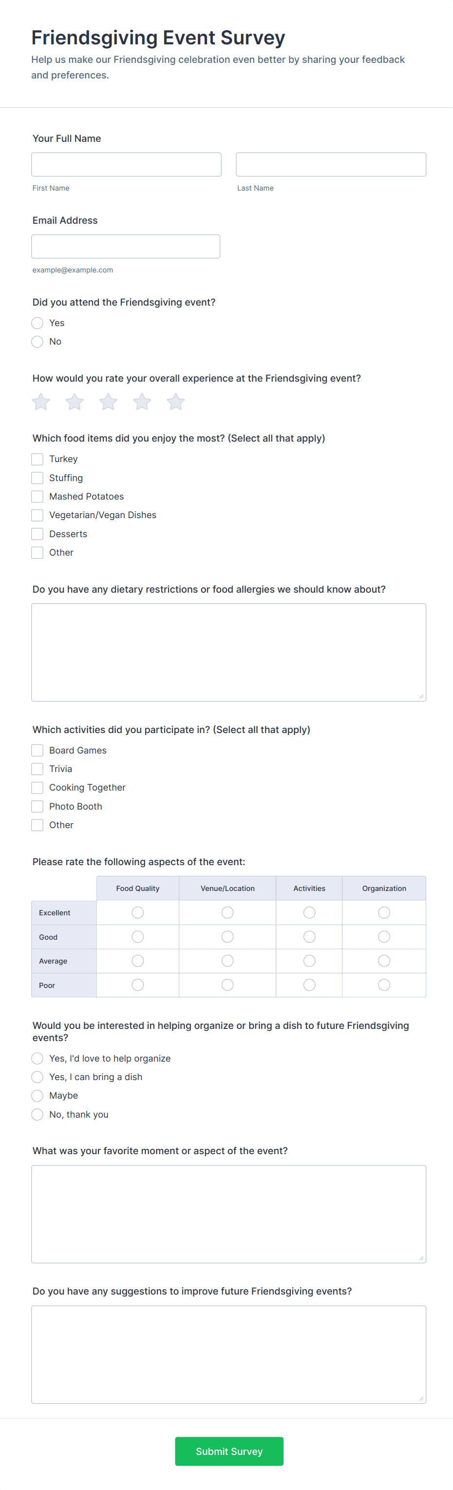 - RSVP Forms: Collect guest confirmations for Thanksgiving dinners or events.