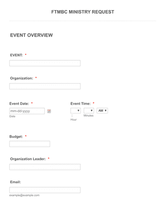 Churches use online forms for new member registration, donations, event and meeting planning, and scheduling visits to your place or worship. Browse one of our online church form templates that will help you gather information of any member, manage volunteer applications, and collect member information and donations easily. Every one of these church form templates are fully customizable and easy to edit.