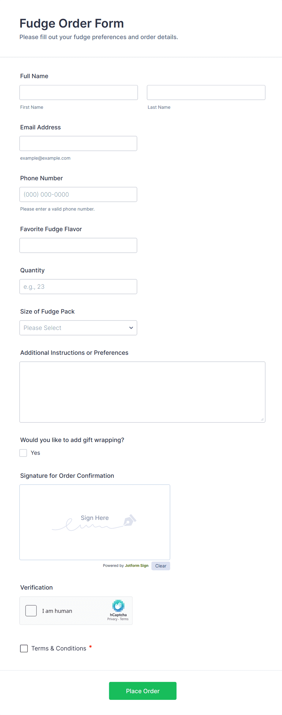 - Custom Cake Orders: Require fields for design details, flavor selection, and special instructions.