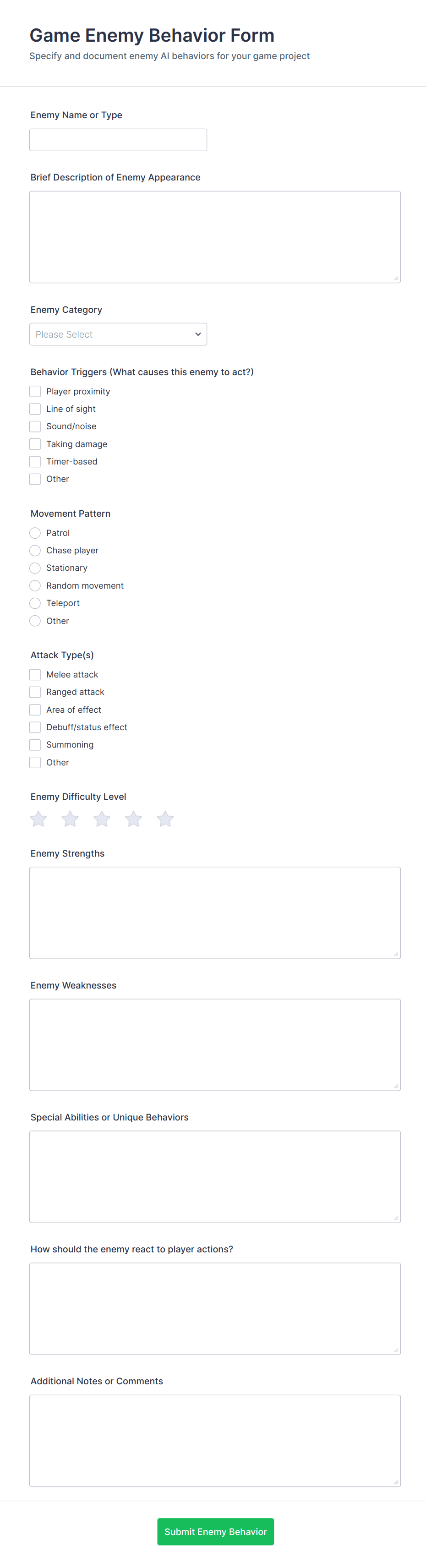 A gaming form template is a pre-designed online form used to collect information related to gaming activities, such as tournament registrations, feedback, event RSVPs, or beta tester applications.