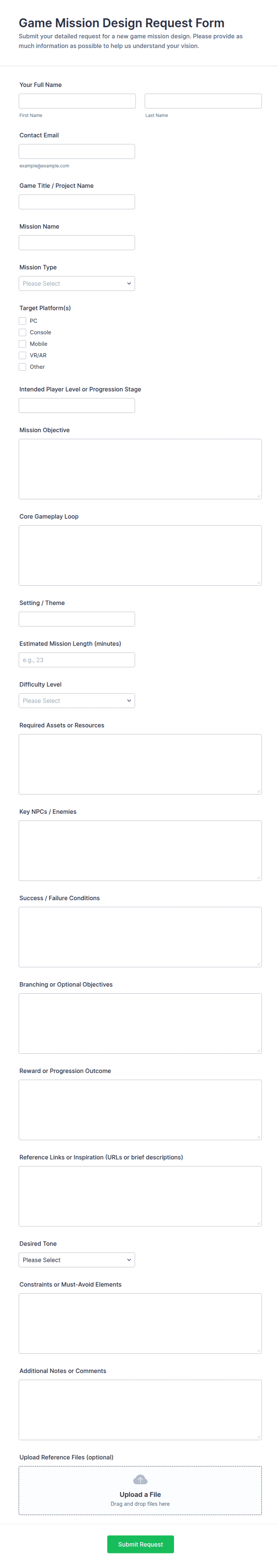 A gaming form template is a pre-designed online form used to collect information related to gaming activities, such as tournament registrations, feedback, event RSVPs, or beta tester applications.