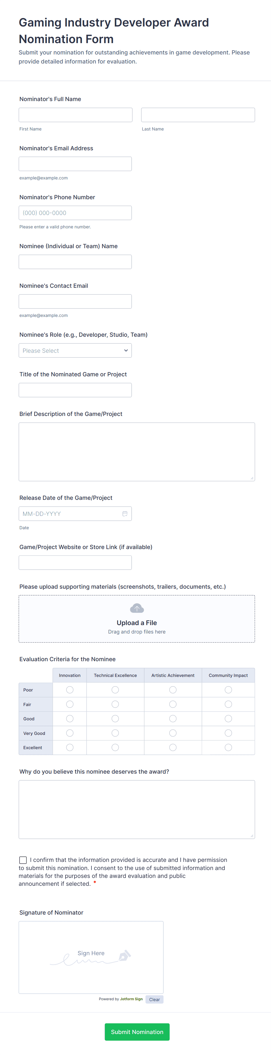 Creating a nomination form with Jotform helps you collect strong, comparable nominations while making review easier for committees.