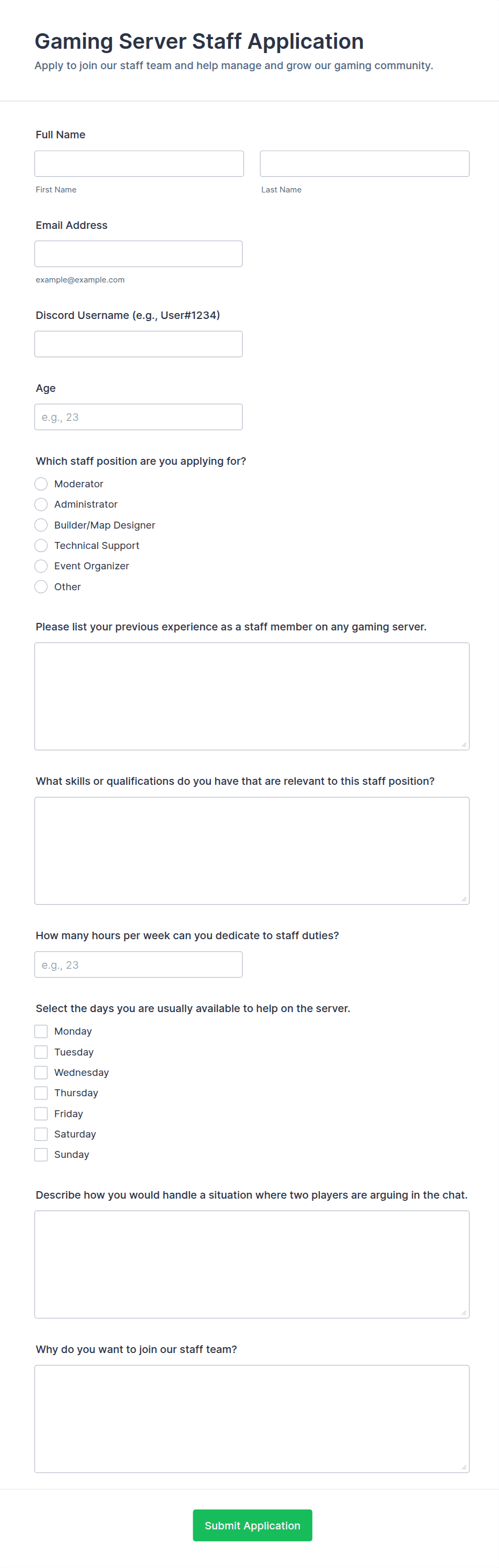 A staff application form is a standardized document used by organizations to collect information from individuals applying for employment, internal transfers, or volunteer positions.