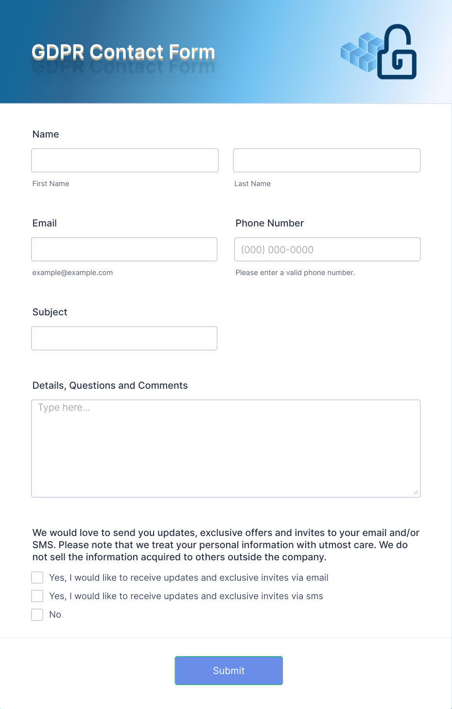 At a minimum, contact forms typically collect the user’s name, email address, and message. Depending on the use case, additional fields like phone number, inquiry type, or file uploads may be included.
