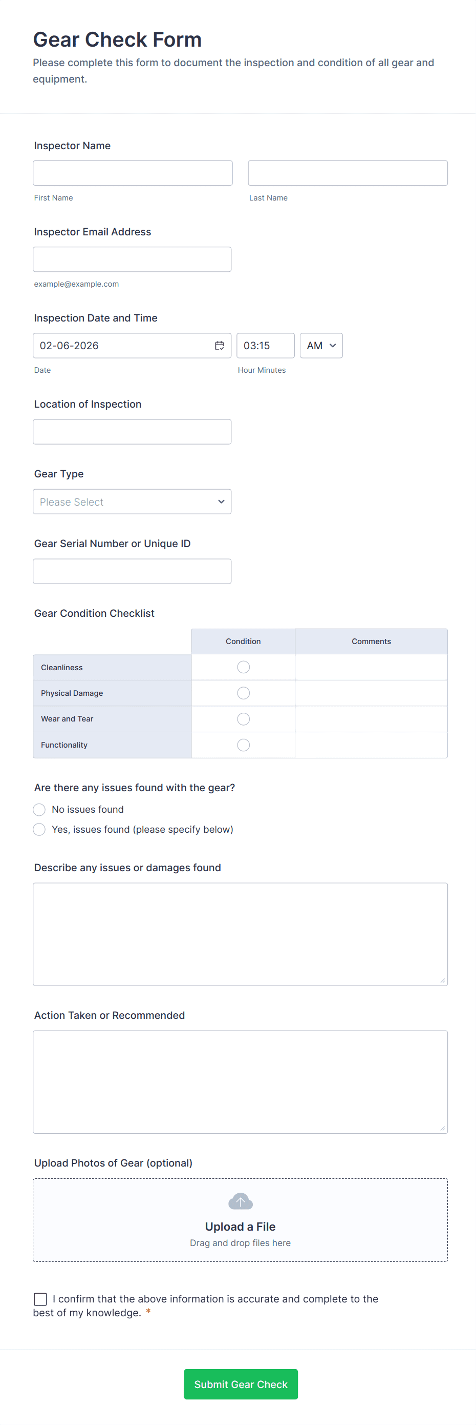 Equipment Inspection Form
