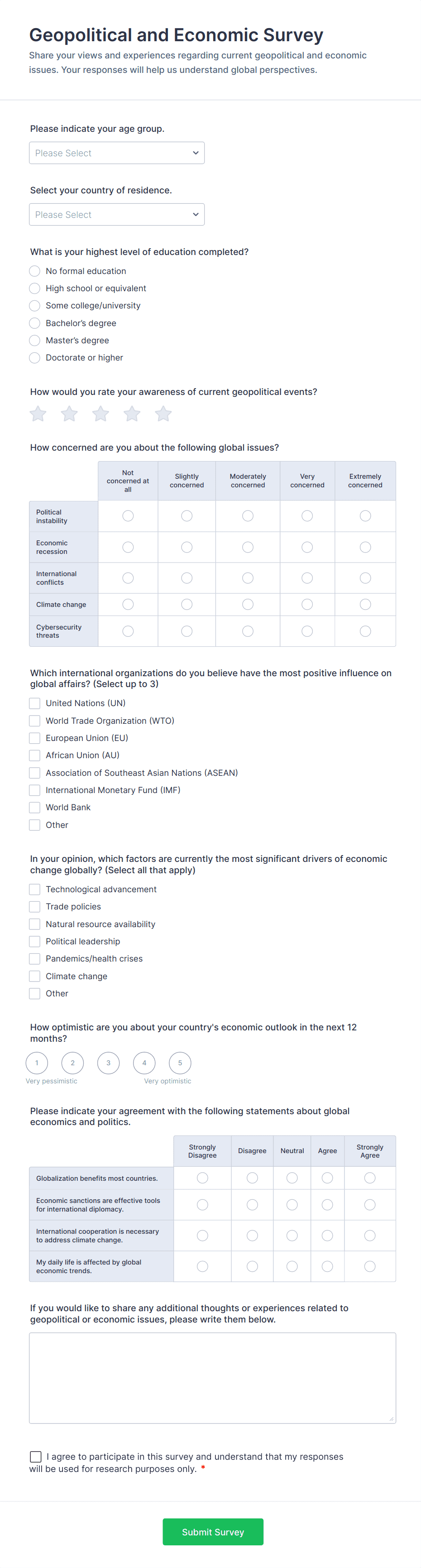 A Demographic Survey is a form template designed to gather essential demographic data for research or marketing strategies