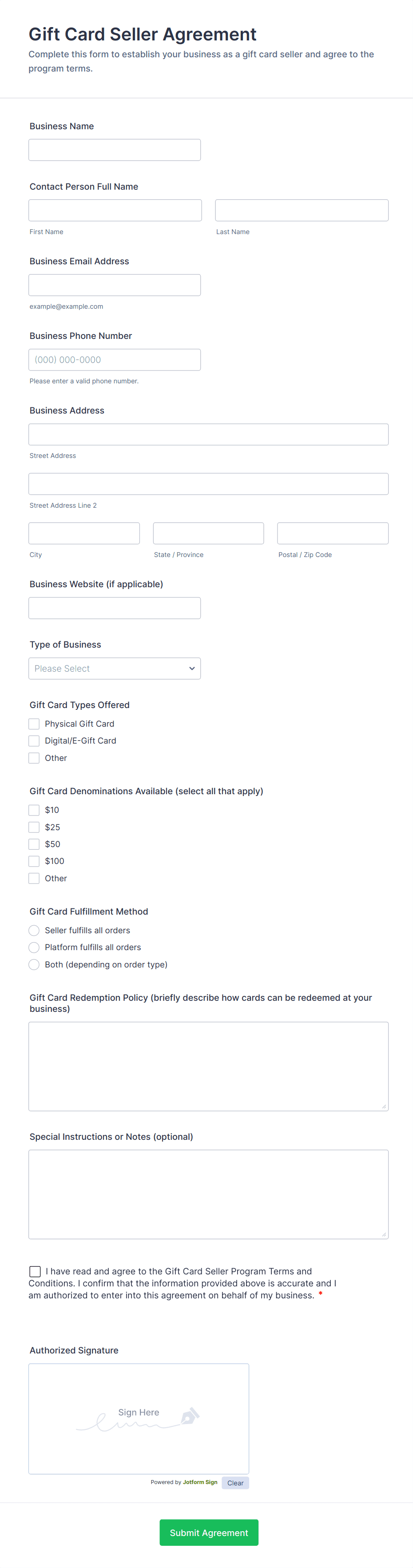 Merchant Forms