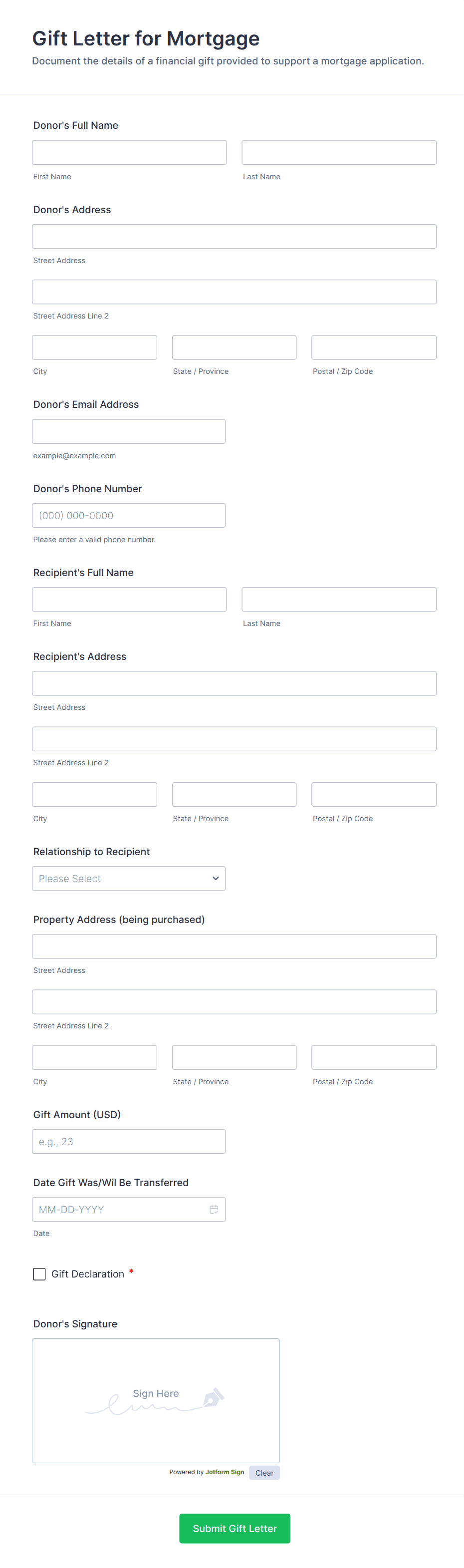 - File upload fields for supporting documents (e.g., pay stubs, tax returns, business plans)