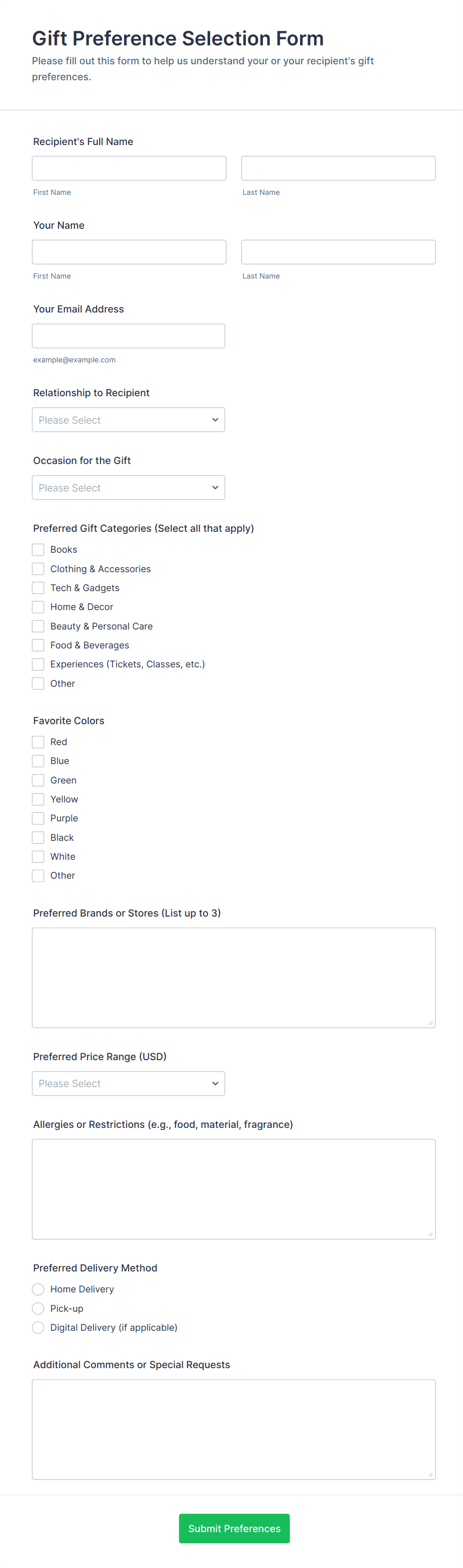 • File upload fields for screenshots or supporting documents (useful for bug reports).