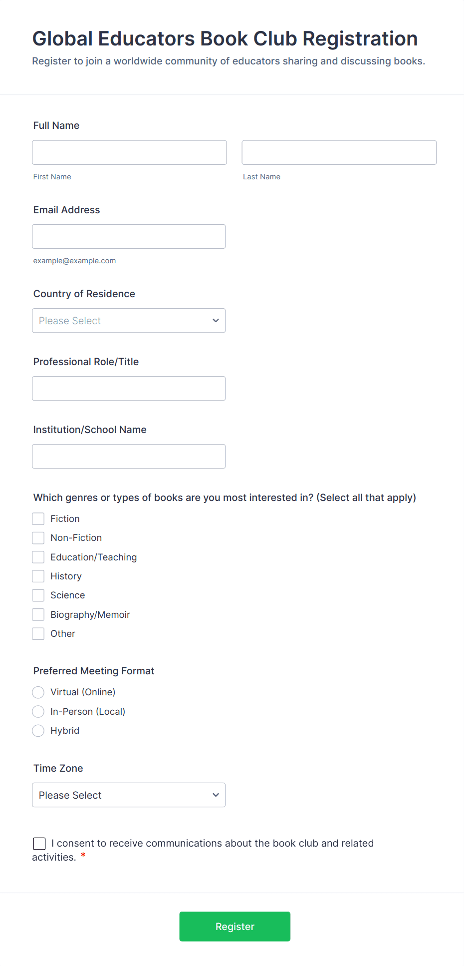 Virtual Workshop Registration Form