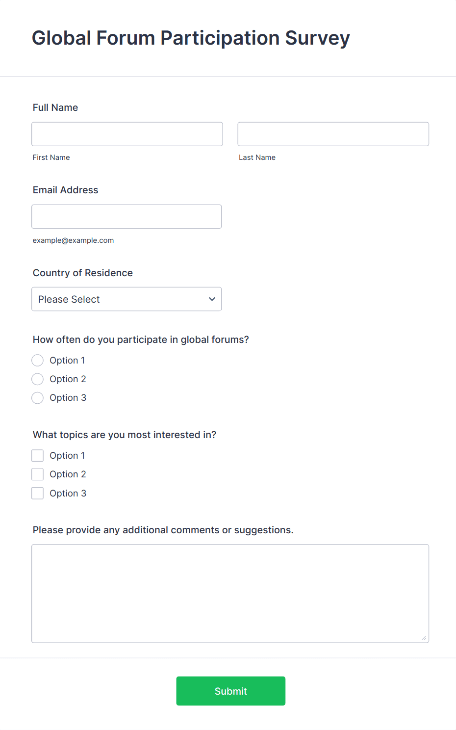 • Optional contact information fields if you wish to follow up with respondents