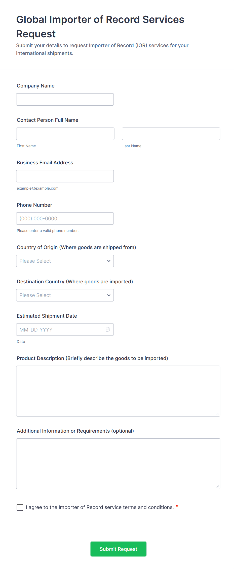 • Conditional Logic: Some forms may use conditional logic to show or hide fields based on previous answers (e.g., only display additional fields if the user selects a specific request type).