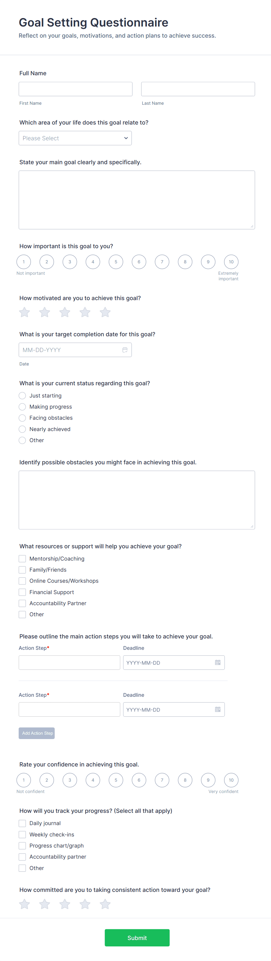 Creating a questionnaire template with Jotform is a straightforward process that empowers users to design effective, customized questionnaires for any purpose. Whether you’re conducting academic research, gathering customer feedback, or assessing employee engagement, Jotform’s platform provides all the tools you need to build, distribute, and manage your questionnaire efficiently.