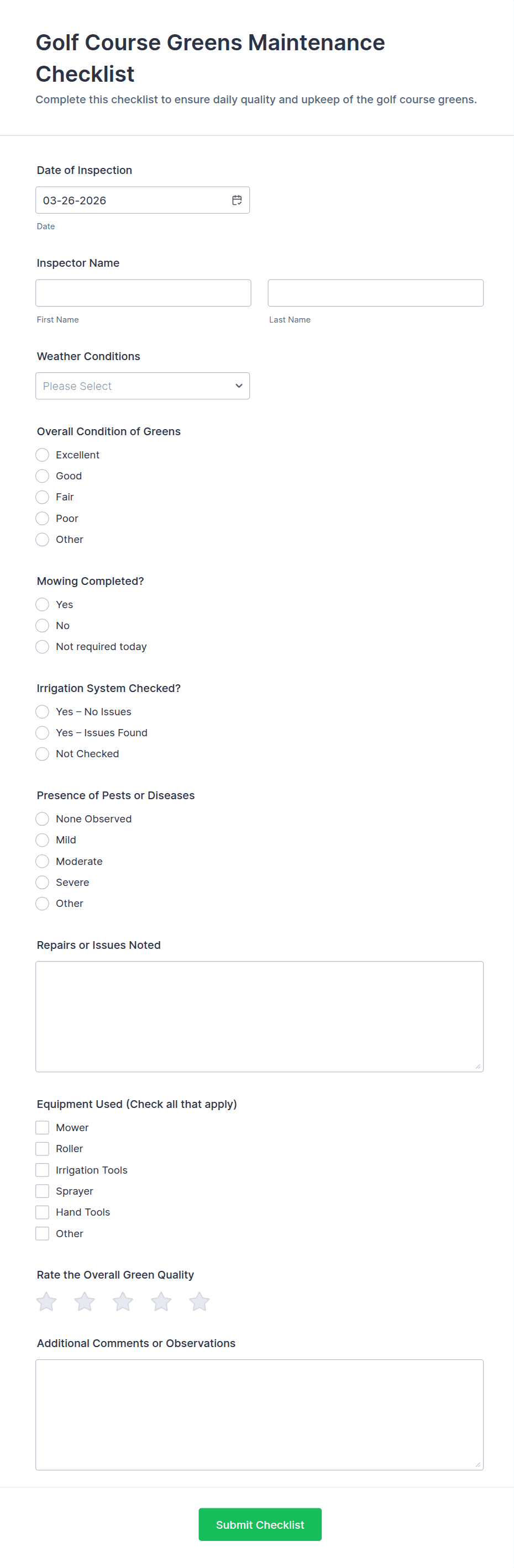• For more complex checklists, add dropdowns, file upload fields (for attaching evidence or reports), or signature fields (for verification).