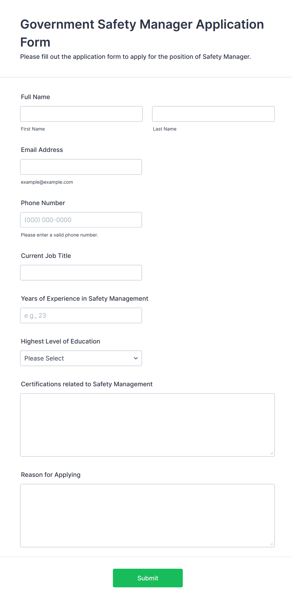 • For job applications, include fields for personal information, education, work experience, references, and file uploads for resumes or cover letters.