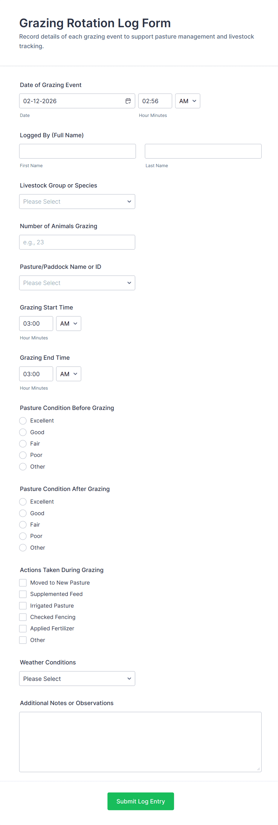 Daily Activity Log Form