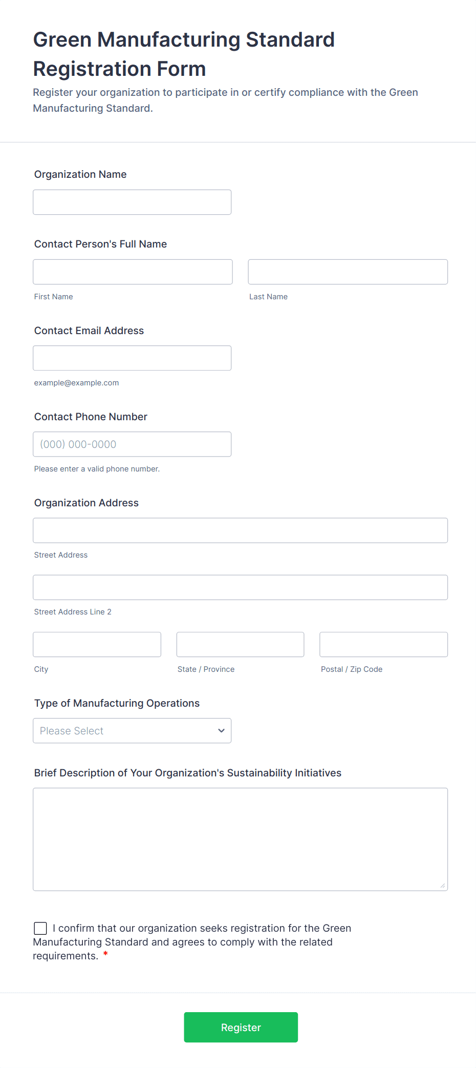 • Government Registration: Forms may require detailed legal documentation uploads, tax ID fields, and compliance checklists.