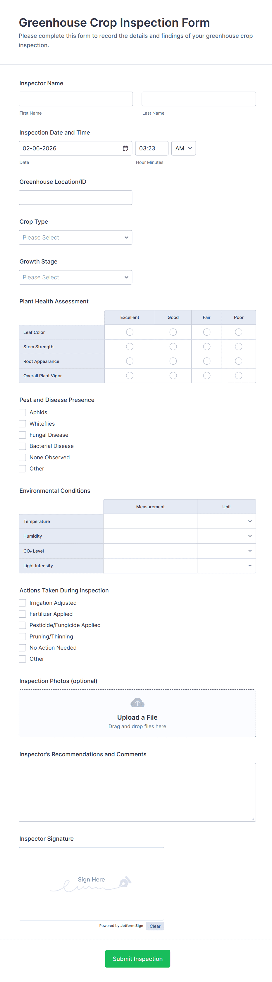 Creating an effective inspection form with Jotform is straightforward and highly customizable, allowing you to address the unique requirements of your inspection process. Whether you’re conducting safety audits, equipment checks, or property walkthroughs, Jotform’s platform ensures your forms are comprehensive, user-friendly, and accessible from any device.