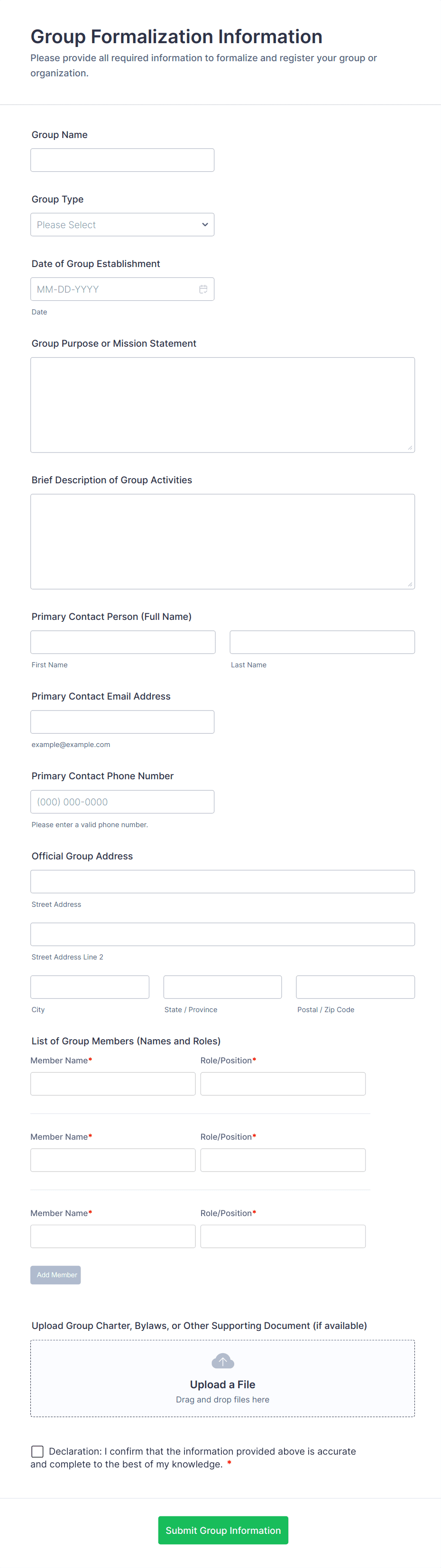 Information Form Templates are versatile digital forms designed to collect, organize, and manage a wide range of data from users, clients, or employees. These templates are commonly used for gathering personal details, contact information, feedback, preferences, or any other type of structured data required for business, educational, healthcare, or event-related purposes. Whether you need to onboard new clients, register participants for an event, collect feedback, or simply update records, information forms streamline the process by providing a standardized and efficient way to capture essential details.