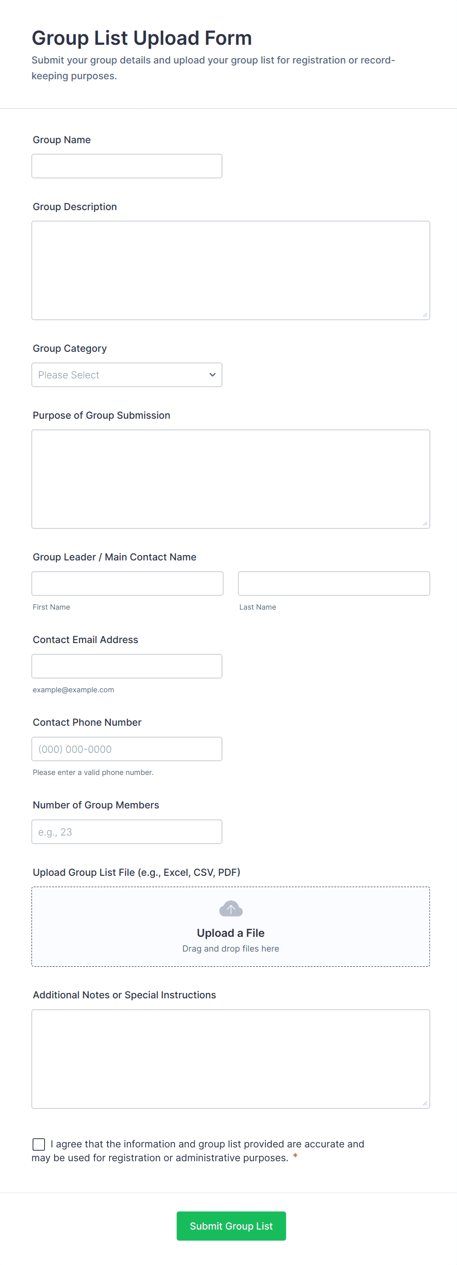 File Upload Forms are specialized online forms designed to collect files, documents, images, or other digital assets directly from users. These forms are commonly used in scenarios where individuals or organizations need to gather supporting materials, such as job applications with resumes, event registrations with ID proofs, homework submissions, design requests, or client onboarding documents. The versatility of File Upload Forms makes them essential for businesses, educational institutions, creative agencies, HR departments, and service providers who require a secure and efficient way to receive files from clients, students, or collaborators.