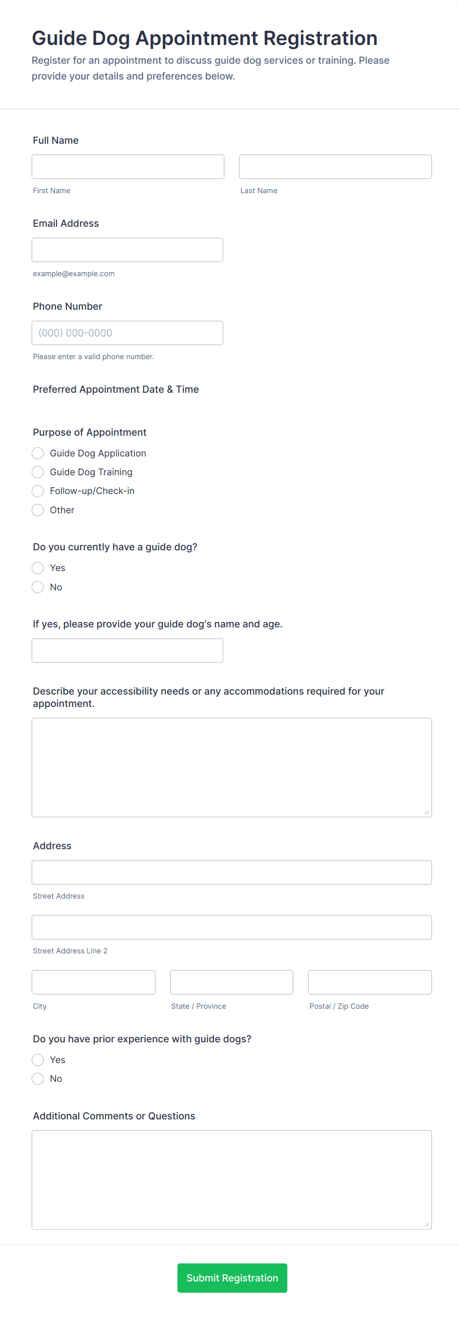 • Medical Appointments: May require fields for insurance information, reason for visit, and medical history.