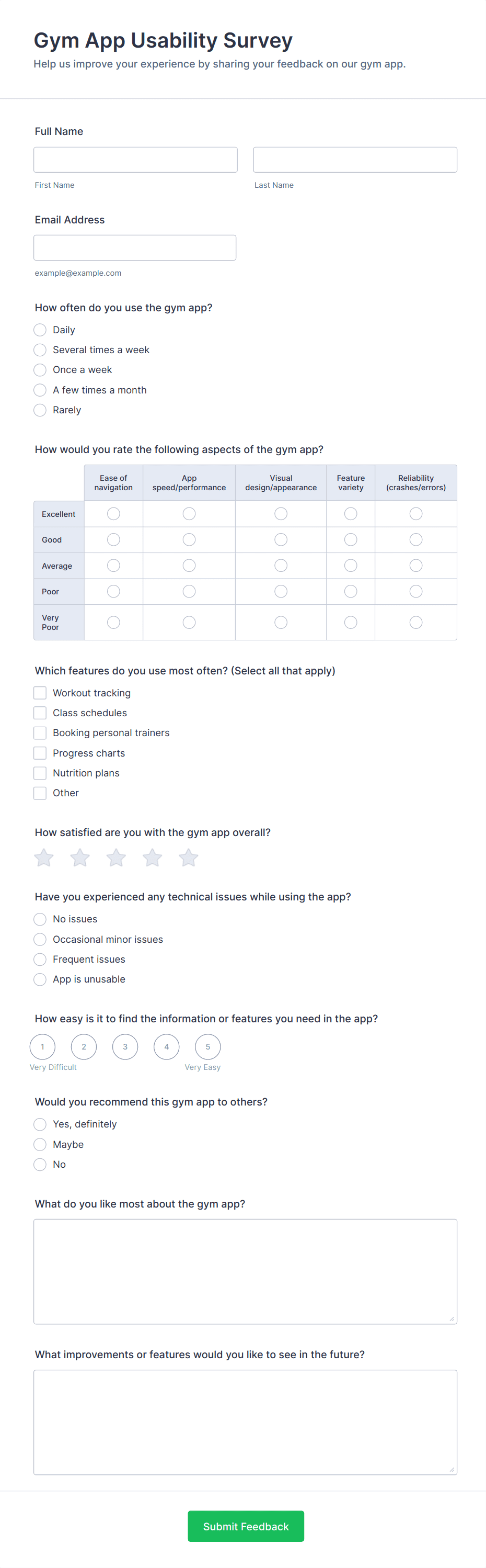 - Beta feedback forms may require fields for bug reporting and suggestions, while ongoing improvement surveys might focus on long-term user experience.