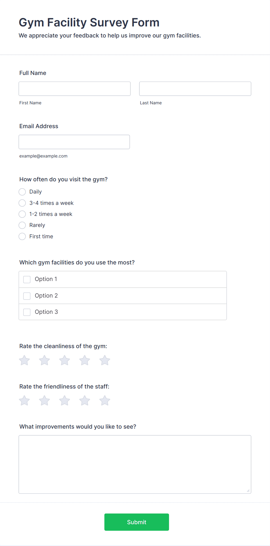 • Product feedback forms may include questions about usability, features, and likelihood to recommend.