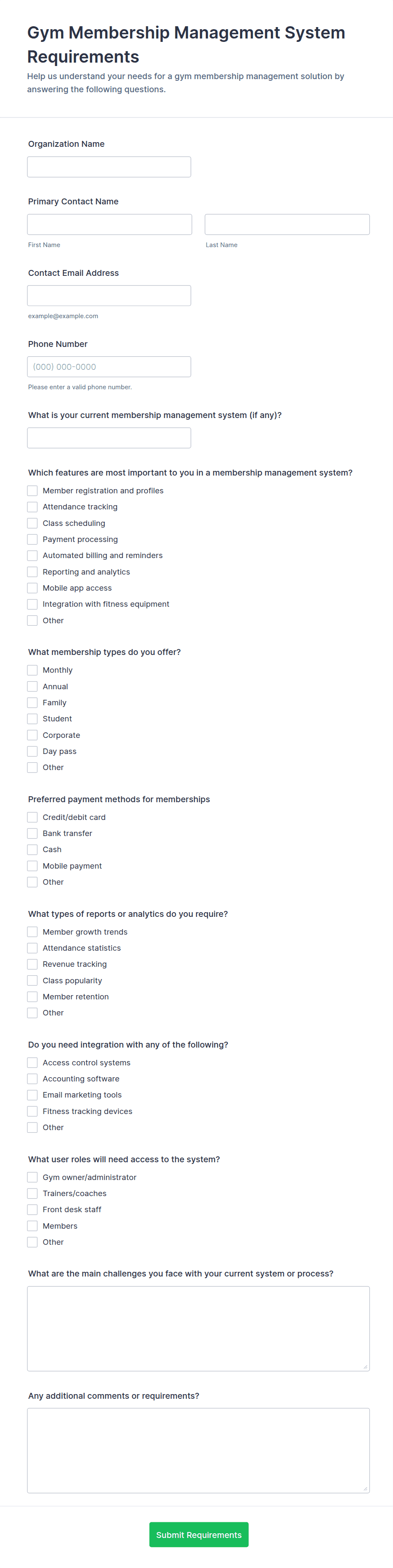 The Sports Club Survey Form allows collecting feedback from your customers asking about their preferred food selection, frequency of their visit, preferred beverage and ideas on how to improve the facility for fellow patrons.