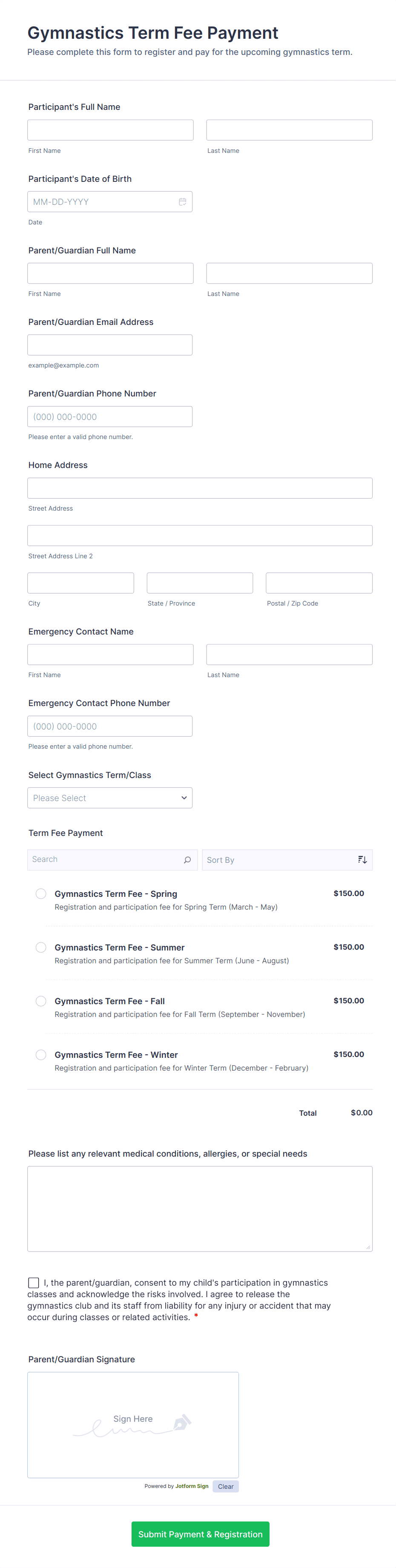 Payment forms are specialized online forms designed to securely collect payments, donations, fees, or orders from customers, clients, or donors. These forms are commonly used by businesses, nonprofits, educational institutions, and service providers to facilitate transactions such as product sales, event registrations, membership fees, or charitable contributions. Payment forms streamline the payment process by allowing users to enter their payment details directly on the form, often integrating with popular payment gateways like PayPal, Stripe, or Square. This eliminates the need for manual invoicing or offline payment collection, making transactions faster and more convenient for both parties.