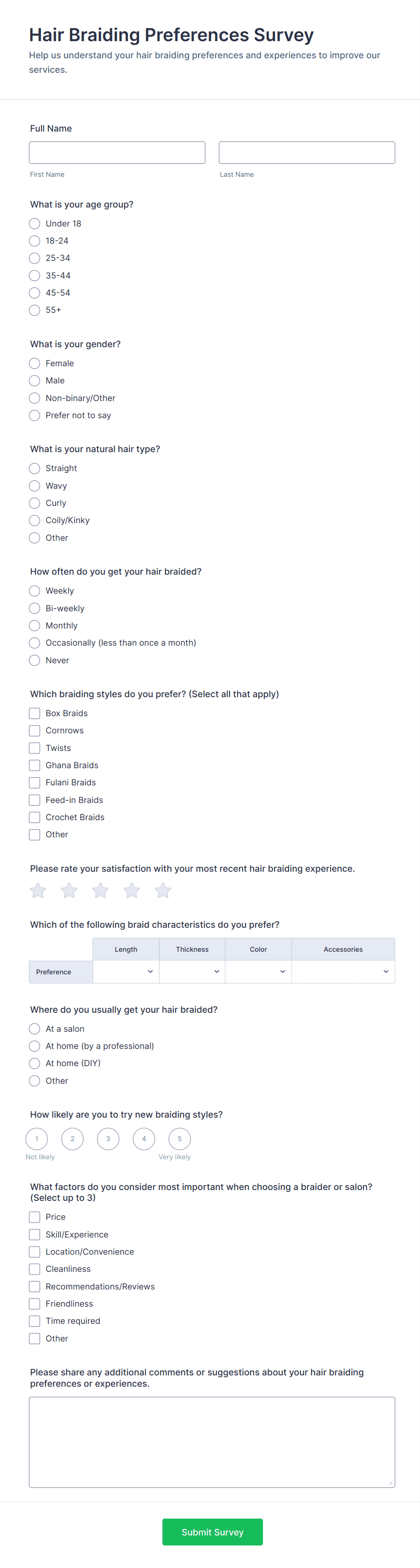 A salon form is a digital document used by beauty and wellness businesses to collect information from clients or staff, such as appointment requests, client details, consent for treatments, or feedback.