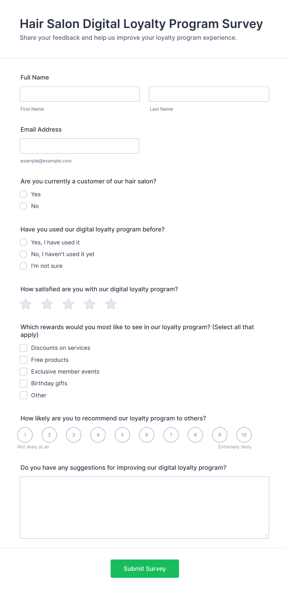 A beauty consultation form is a survey used by beauty professionals to gather information from their clients. Easy to use. No coding.
