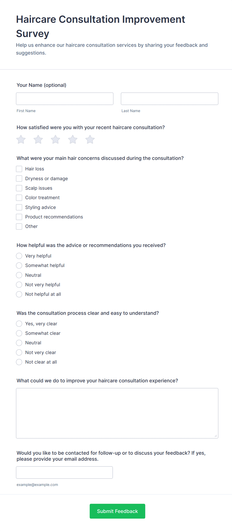 Create an anonymous feedback form in seconds with this ready-made template. Easy to customize and share. Works on any device. No coding knowledge required.