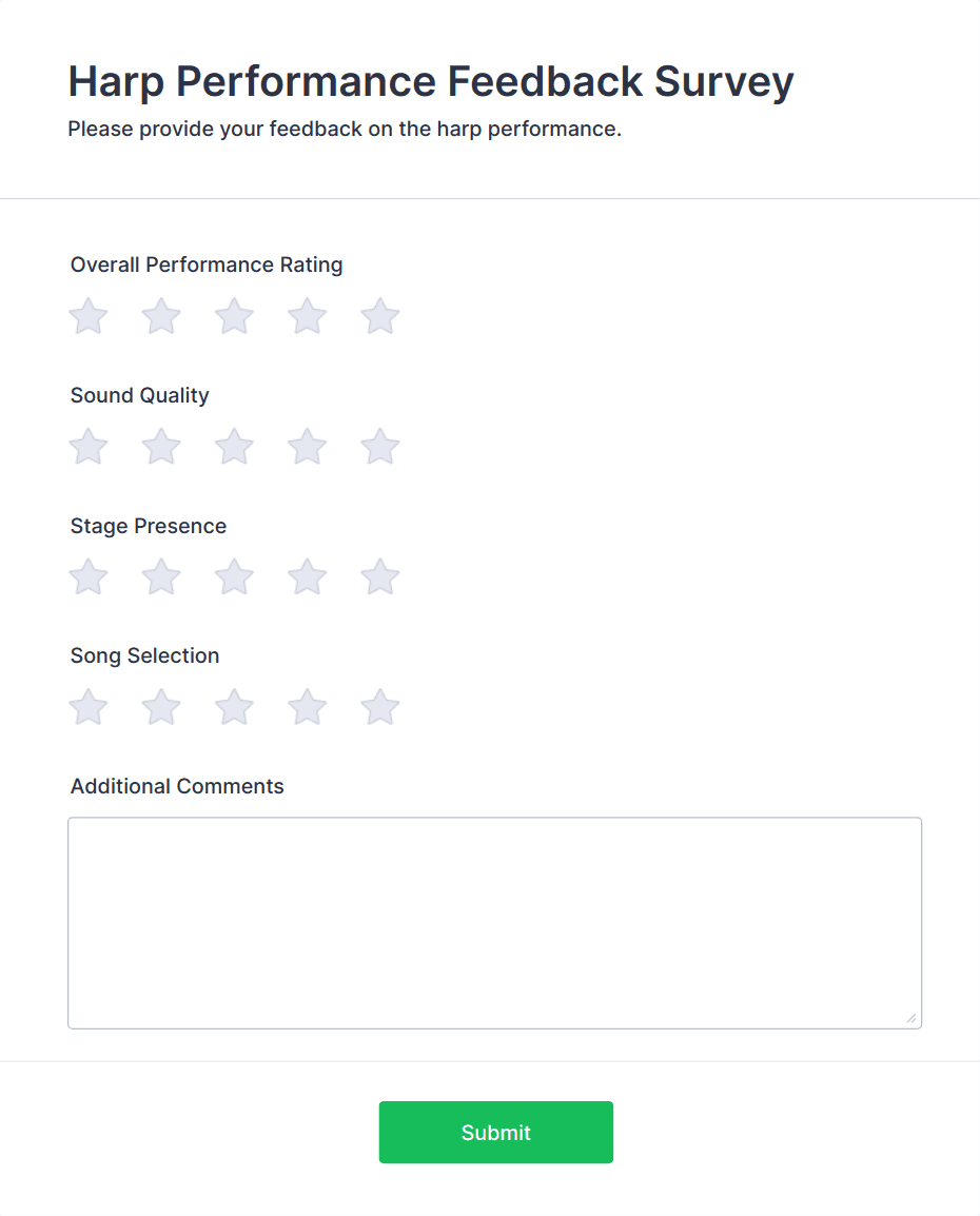 A karaoke contest judging form is used by a karaoke contest coordinator to award the top scores for a karaoke contest. No matter how you like to do things, Jotform’s free karaoke contest judging form can keep up!