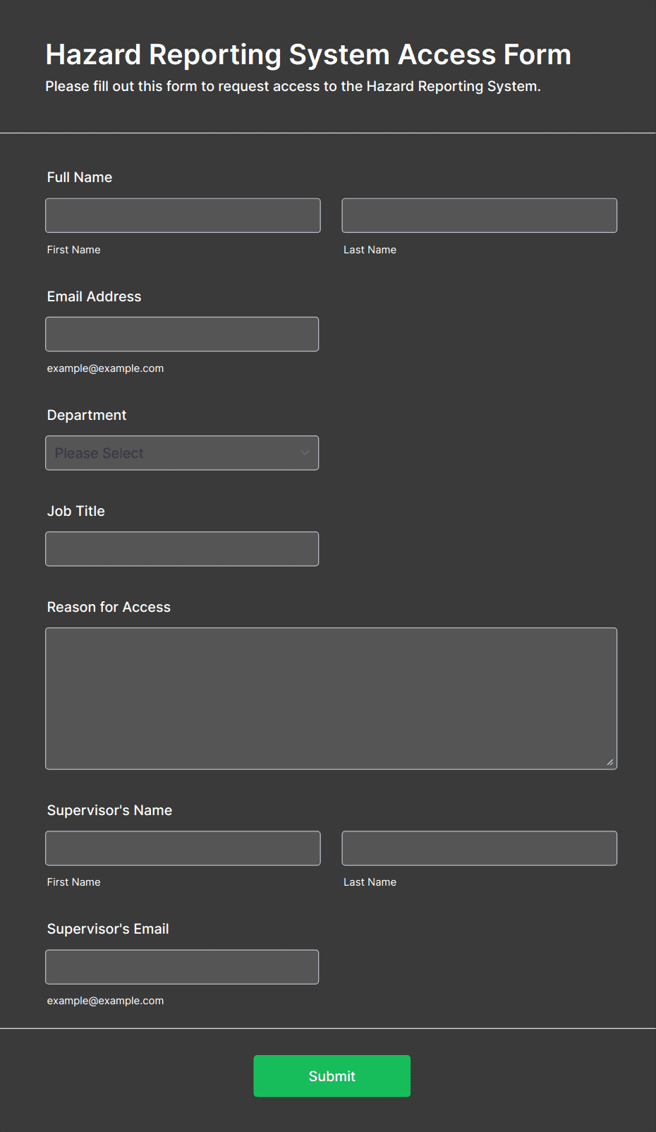 • Conditional Logic: Some forms may use conditional fields to display additional questions based on previous answers (e.g., if a hazard is found, prompt for corrective action details).