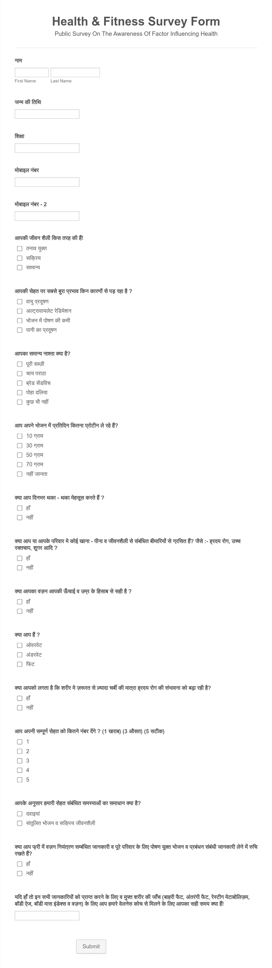 - For health risk assessments, include checkboxes or multiple-choice questions about lifestyle, family history, and specific risk factors.