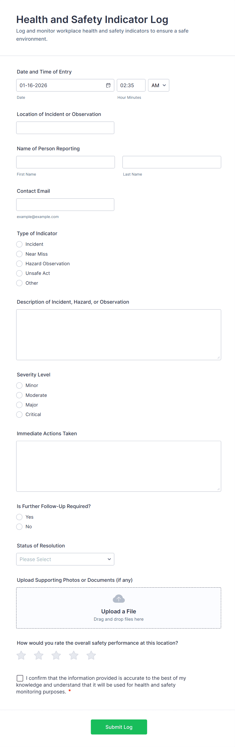 3. What information should be included in an incident report form?
