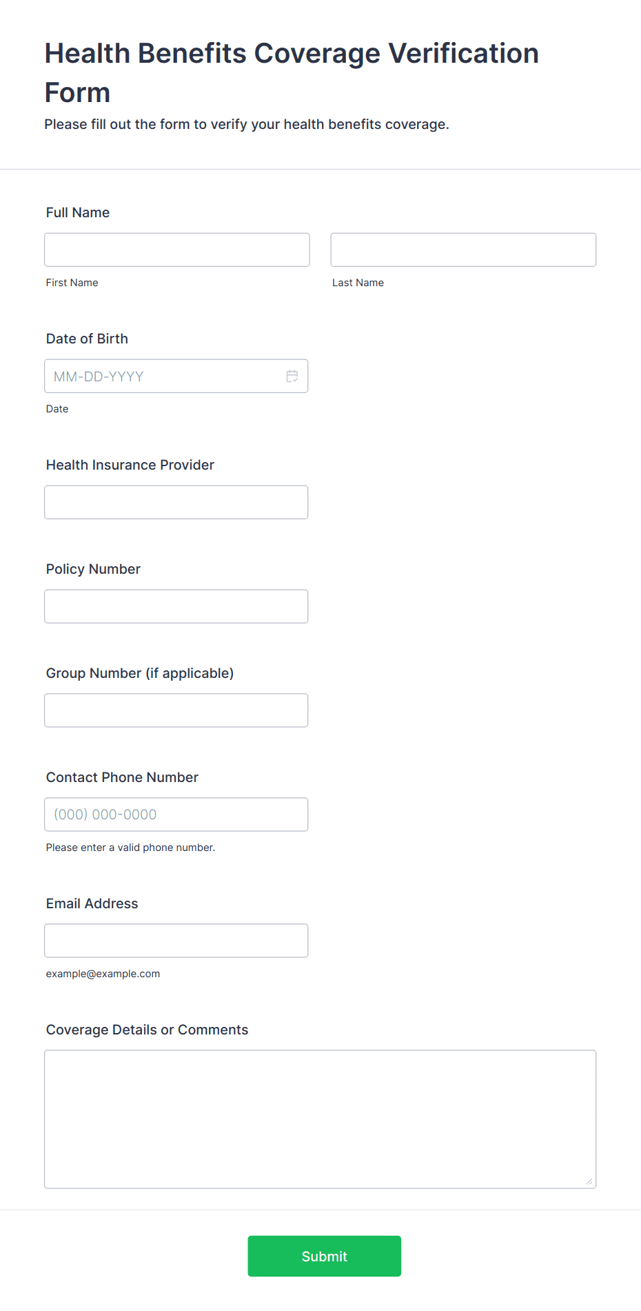 Health Benefits Coverage Verification Form