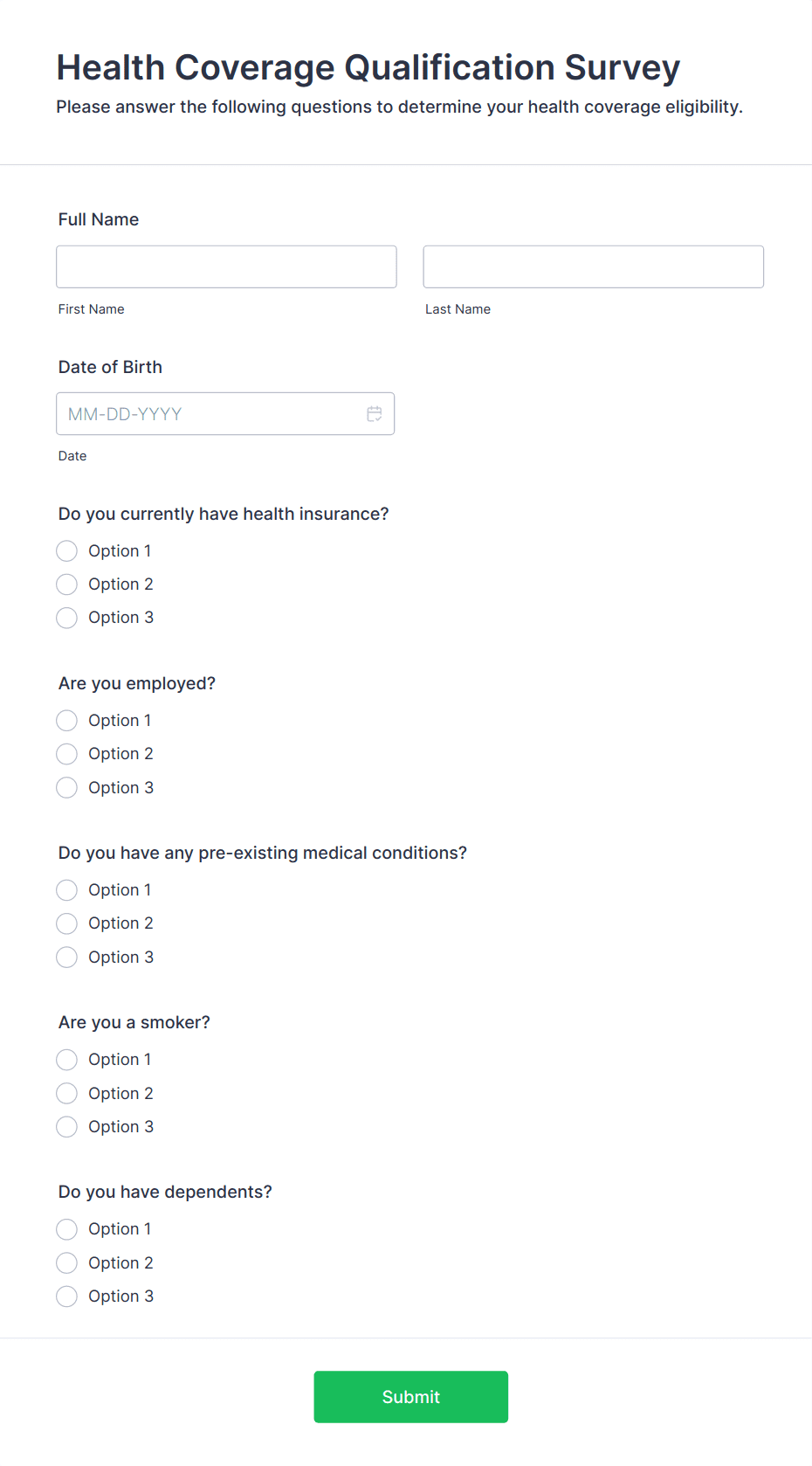 Healthcare surveys are specialized questionnaires designed to collect valuable information from patients, healthcare professionals, and other stakeholders within the medical field. These surveys can be used for a variety of purposes, such as assessing patient satisfaction, gathering feedback on healthcare services, monitoring public health trends, evaluating treatment outcomes, and conducting research studies. Healthcare organizations, clinics, hospitals, and research institutions rely on these surveys to improve patient care, streamline operations, and ensure compliance with industry standards.