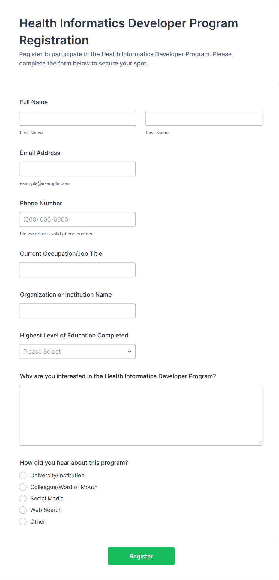 • Corporate Training: Collect employee ID, department, and supervisor approval.