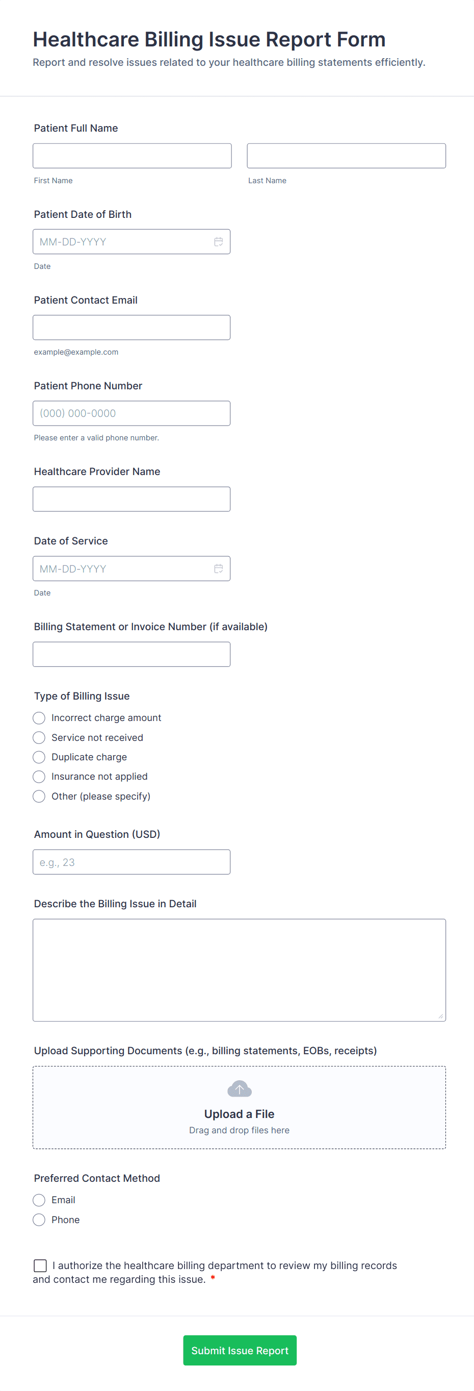 Our collection of online healthcare form templates makes it easier to register new patients and learn about their medical history. Jotform’s online form builderprovides healthcare practitioners with an array of widgets, applications, and themes to enhance patient engagement — enabling better communication between patient and provider to better understand patients and their needs.