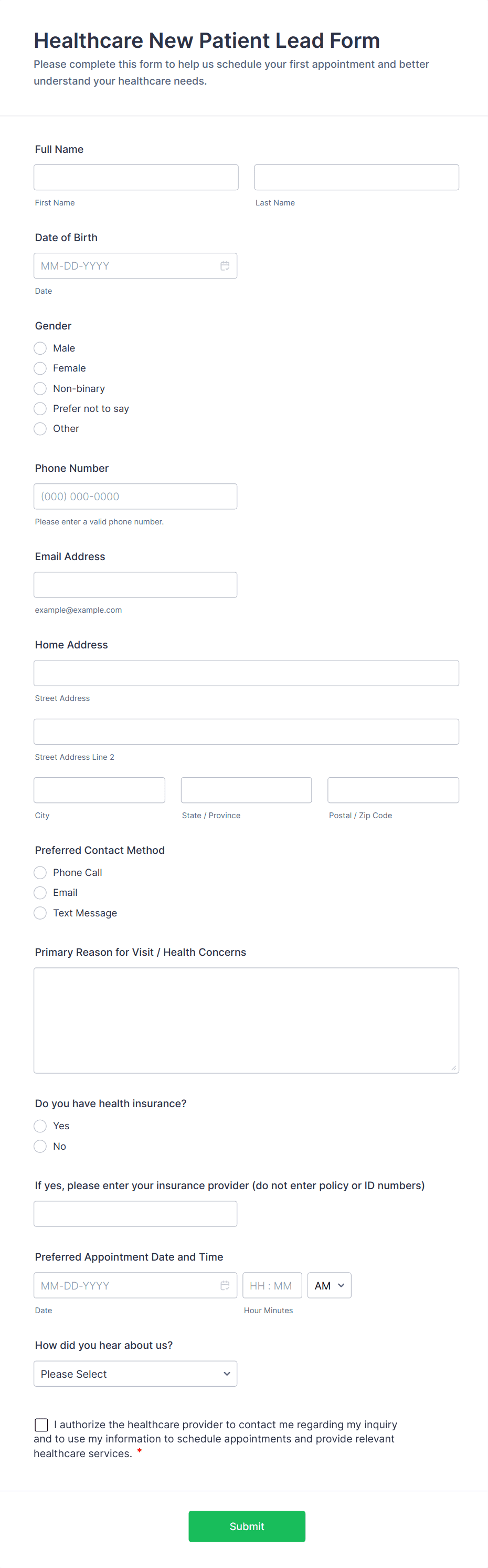 Health forms have several important uses across the healthcare system. First, they are used to collect essential information about a patient’s medical history, current health status, and insurance details, making them a crucial aspect of the patient onboarding process. They also facilitate effective patient care by providing healthcare providers with an overview of a patient's medical history, which can drive proper diagnosis and treatment plans.
