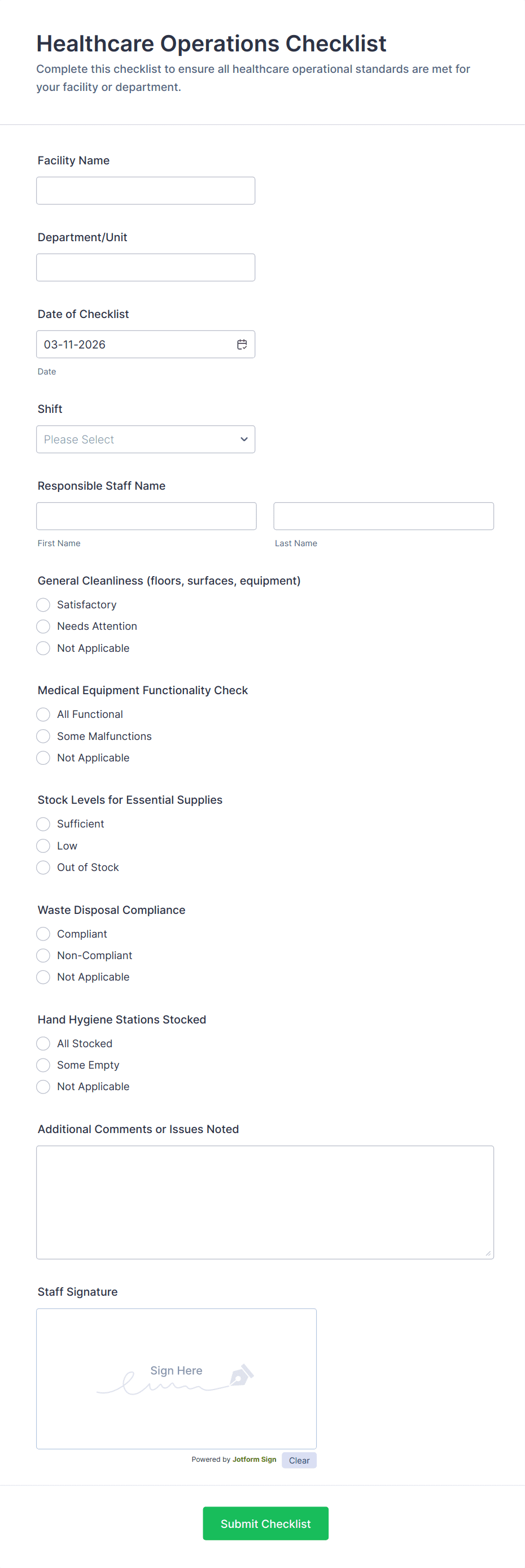 By following these steps, you can create a checklist form that streamlines your processes, ensures consistency, and provides valuable documentation for compliance or reporting. Jotform’s flexibility allows you to adapt your checklist forms as your needs evolve, making it a powerful tool for ongoing task management.
