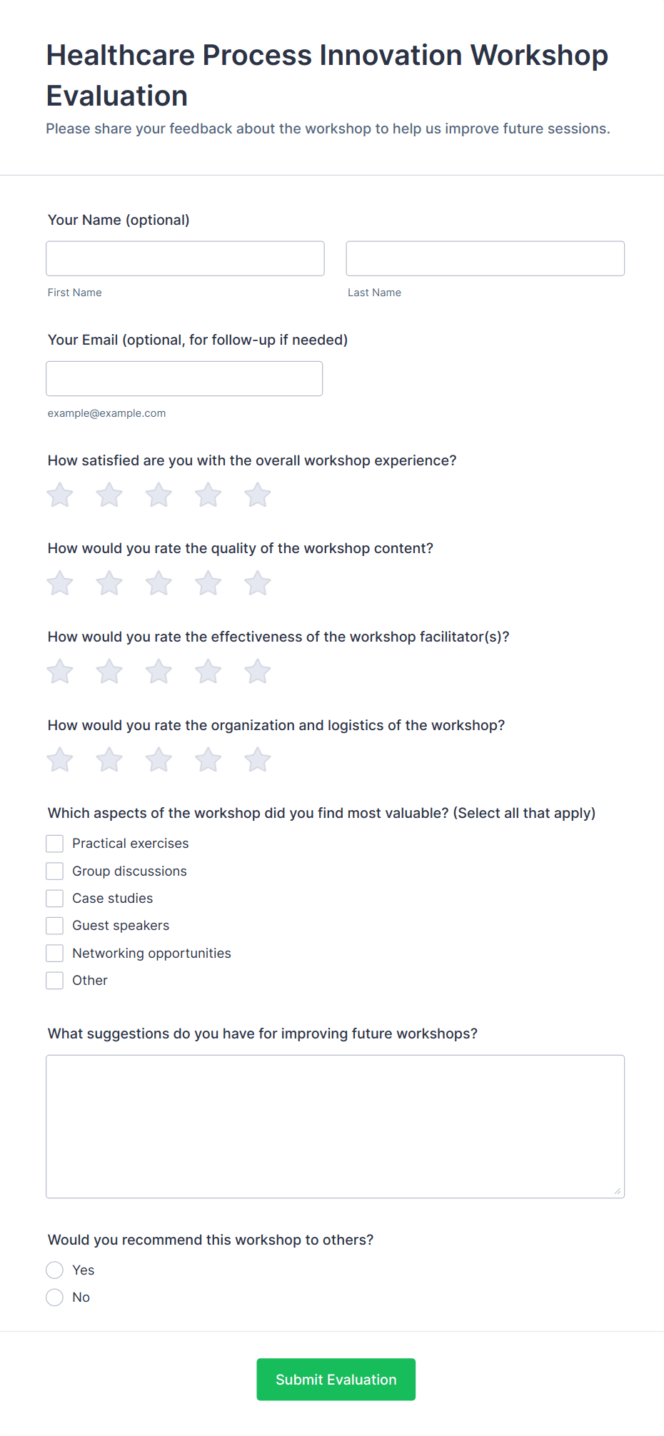• Training or Workshop Assessment: Evaluate the effectiveness of educational or training sessions.