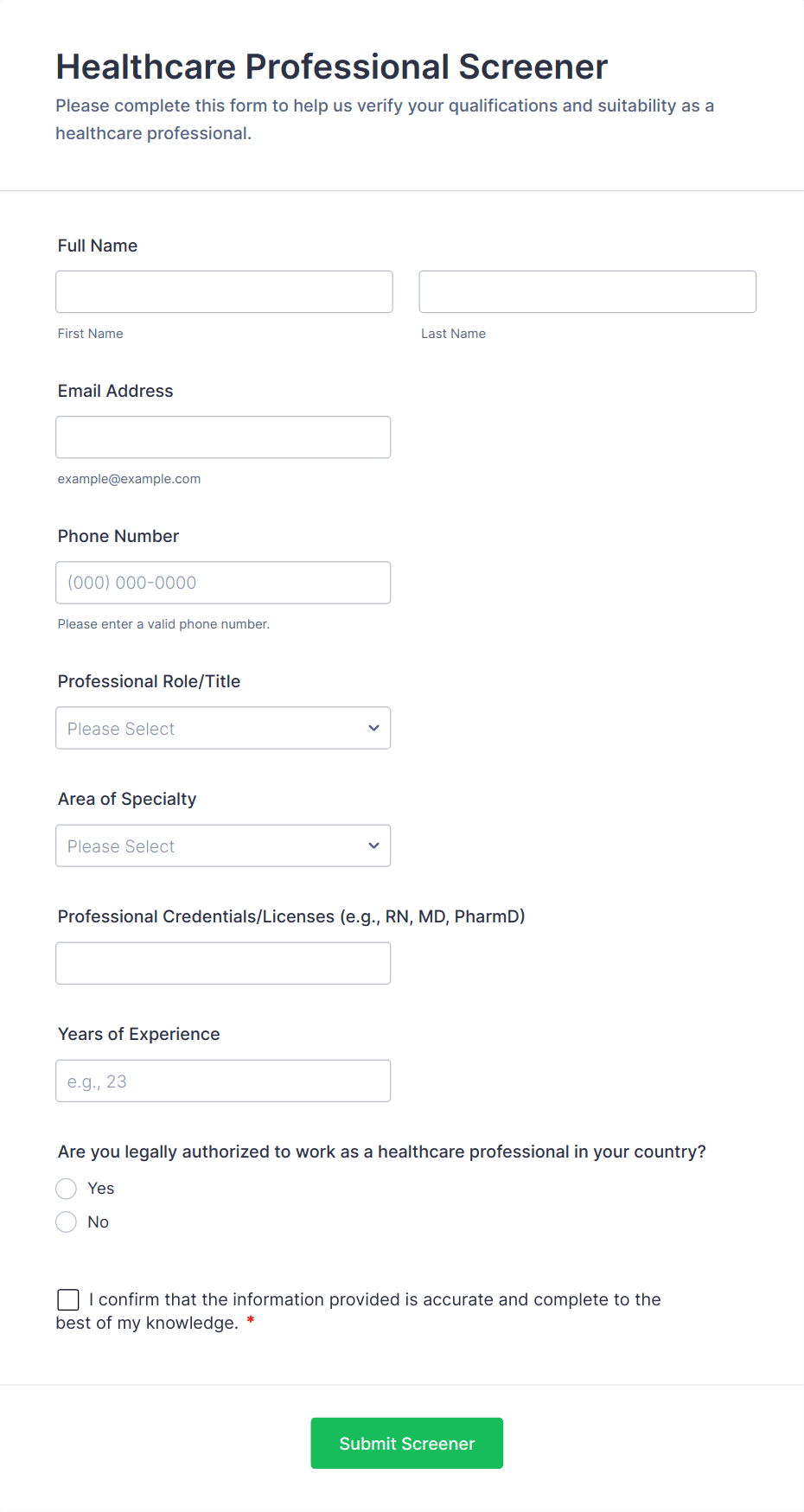 Clinicians, nurses, intake teams, telehealth providers, and patients may all use healthcare assessment forms depending on the workflow.
